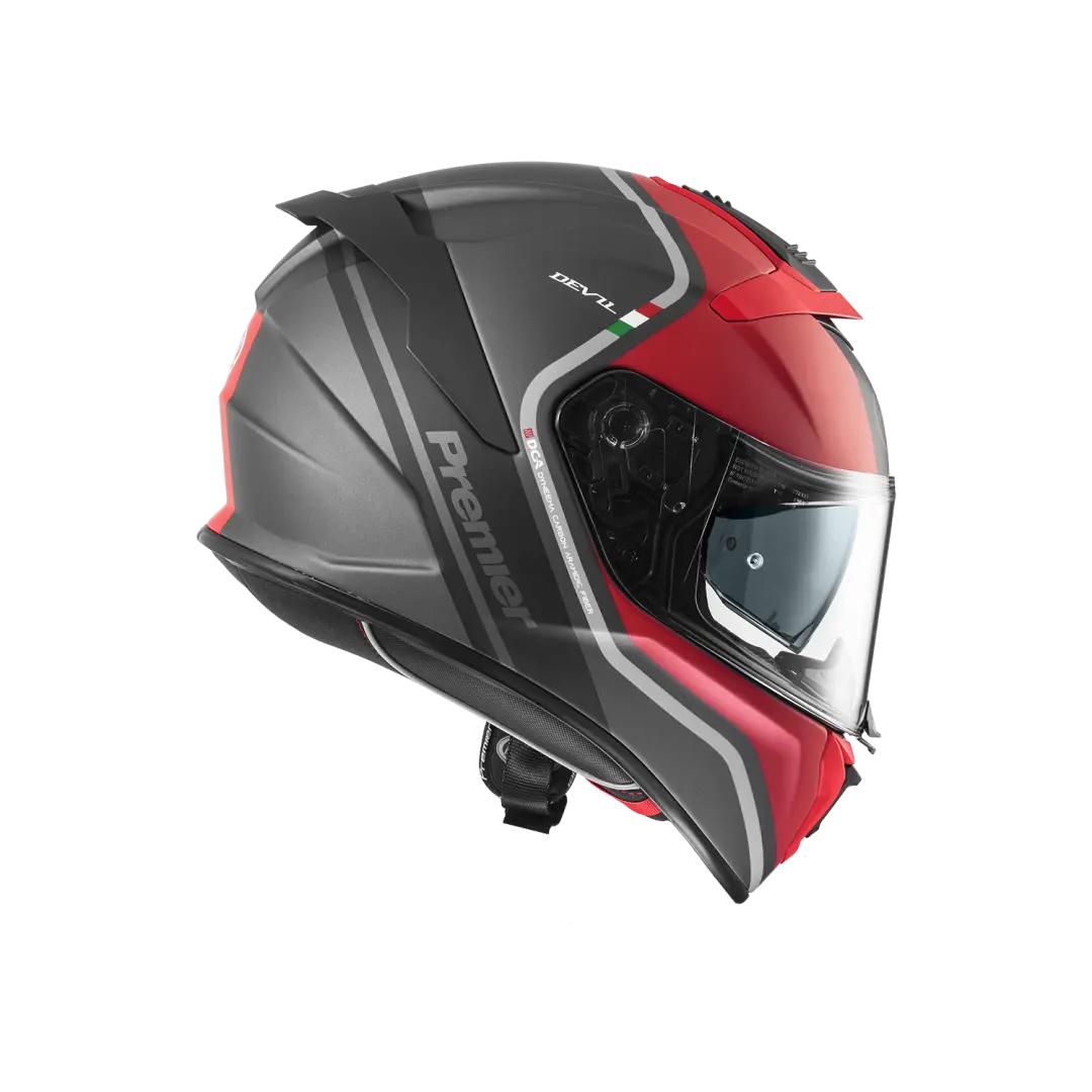 - Vizir je od polikarbonata otpornog na ogrebotine, a kaciga je opremljena malim unutarnjim tamnim vizirom koji se može uvući koji omogućuje optimalnu vožnju u svim vremenskim i svjetlosnim uvjetima.