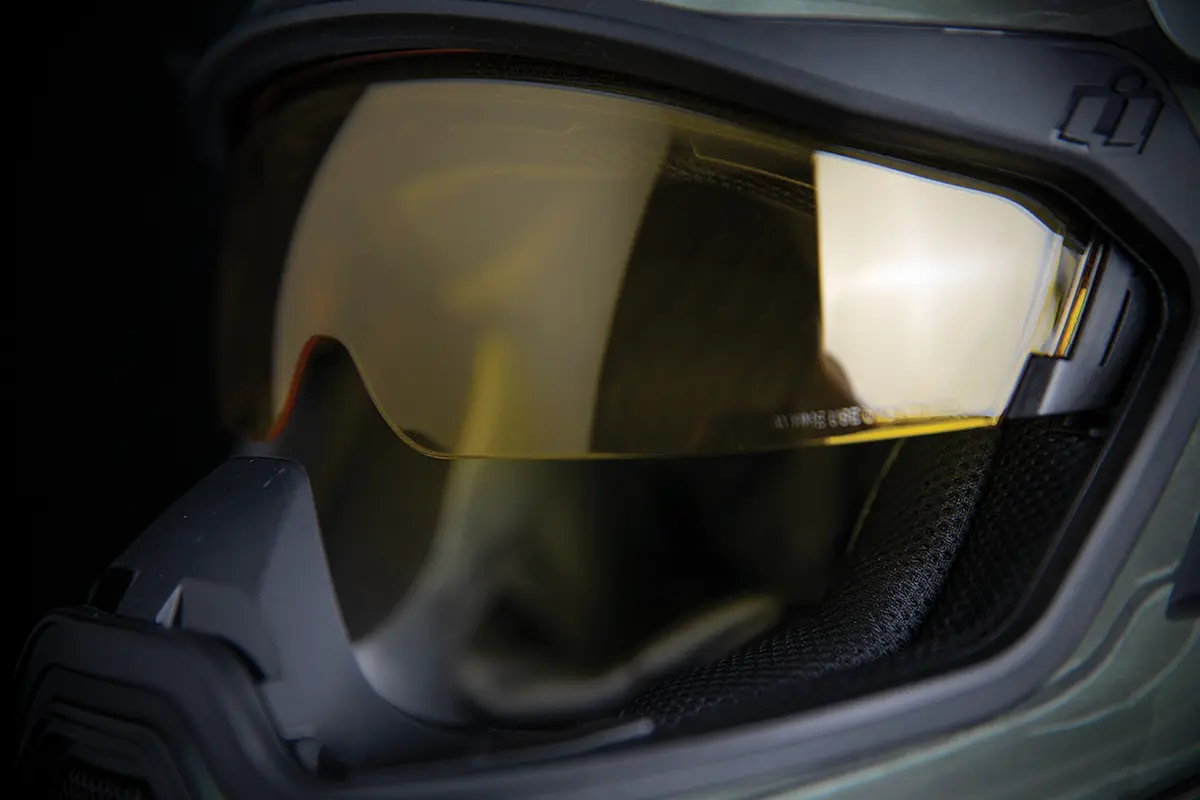 - Vanjski Fliteshield™ koji se brzo mijenja i ne zamagljuje štiti od krhotina, dok unutarnji, izmjenjivi DropShield™ drži sunce pod kontrolom pritiskom na prekidač