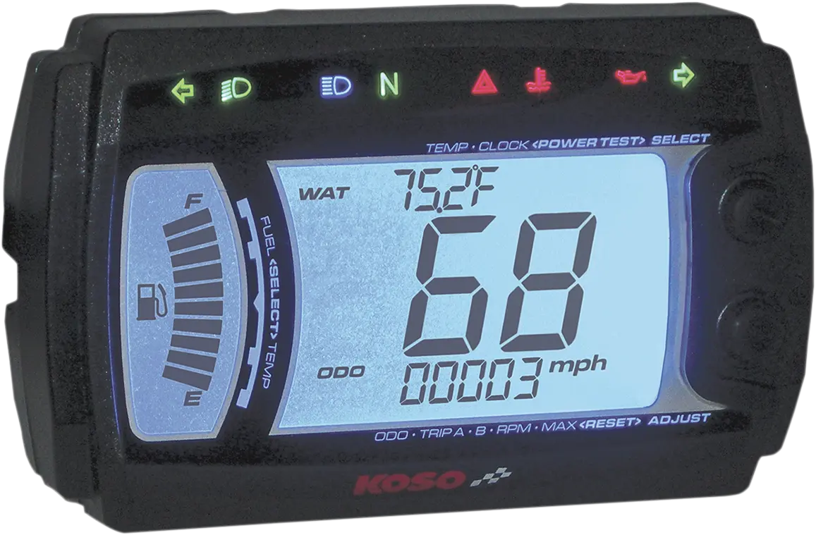 Digital Fuel Gauge, Digital Odometer, Digital Speedometer, Digital Tachometer, Water Temperature, Tripmeter